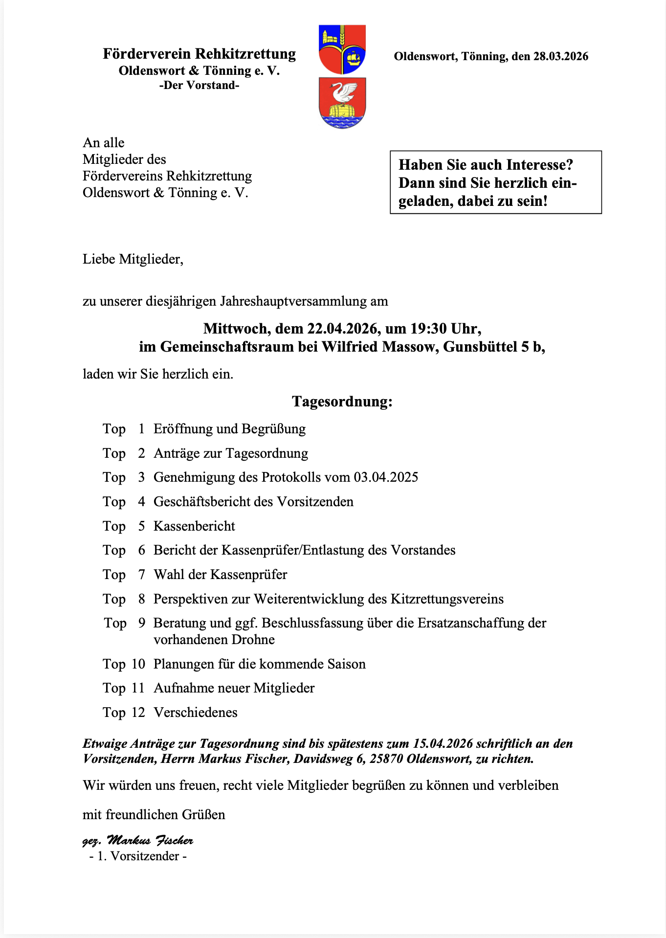 Aktuelles Neuigkeiten Oldenswort Jahreshauptversammlung Plakat ganz anzeigen Suche nach: Start Leben in Oldenswort Schule Unser Konzept Impressionen Betreuungsangebot Vertrag Schüleraufnahmebogen Anmeldung Schulvertrag Kontaktformular Privatschule Oldenswort Kirchengemeinde Gottesdienste und Veranstaltungen Vermietung Karkenhuus Broschüren Kontakt & Öffnungszeiten der Kirchengemeinde Ärzte & Gesundheit Handel und Gewerbe De Ole Backstuv Café blaublütig Eisenwaren Timm Landschlachterei Kühn Unse Koopmann Femkes Küstenschnitt Dachdeckerei Wolf & Ohls Ferienwohnungen Bus & Bahn Müllabfuhr-Termine Termine & Veranstaltungen Vereine Sportvereine TSV Oldenswort Sportangebot Aikido Fitness Fußball Spielplan 1. und 2. Herren Handball Jumping Fitness Rückenfitness Turnen Über Uns Förderverein Downloads Kontakt Externe Links Manns & Fruunsboßelvereen Impressionen Unterverband Landesfeldklootbosseln Spende Hospizdienst Eiderstedt Preisbosseln 2024 Landschaftsbosseln in Koldenbuettel Landesstrassenbosseln in NF Landespokalbosseln der Frauen Steinburg Landesfeldklootbosseln in NF Fahrradtour nach Garding EM in Ostfriesland Fahrradtour 2023 Fahradtouren 2020-2022 Weitere Fotos Veranstaltungen 2026 Feldkampftermine 2026 Verbandstermine 2026 Über uns Wie wird geboßelt? Boßel-ABC Boßel-Lied Kontaktdaten MANNS- & FRUUNSBOSSELVEREEN Externe Links Ringreitergilde Impressionen Termine Über uns Würdenträger Kontaktdaten Ortskulturring Förderverein Rehkitzrettung Vorstand Satzung Mithelfen & Beitritt Beitrittserklärung Kontakt Rehkitzrettung Weitere Vereine & Verbände Vor Ort Treffpunkt Oldenswort Café im Treffpunkt Oldenswort Ortsgeschichtliche Sammlung Museum – Dauerausstellung Geschichte des Hauses Dorfstaße 31 Chronik Oldenswort DeOldeWurt Sehenswürdigkeiten Fotos von Oldenswort Wichtige Adressen Kita Oldenswort Räumlichkeiten im Überblick Kita-Gruppenräume Mitarbeiter*innen Projekte Kita-ABC Öffnungszeiten Formulare und Dokumente Förderverein Träger Hort Hort Anmeldedokumente Feuerwehr Jugendfeuerwehr Fahrzeuge Mitglied werden Gemeinde Verwaltung Gemeindevertretung Baugebiete Protokolle Sitzungstermine Stellenangebote